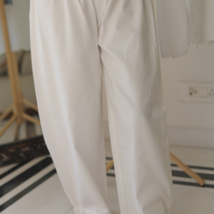 These Classic White Cotton Pants offer the perfect combination of style and comfort. Made from premium breathable cotton, they feature a high-waist design with a clean flat-front look, enhanced by a structured waistband for a polished appearance. The relaxed wide-leg cut ensures ease of movement while maintaining a timeless and sophisticated silhouette.
