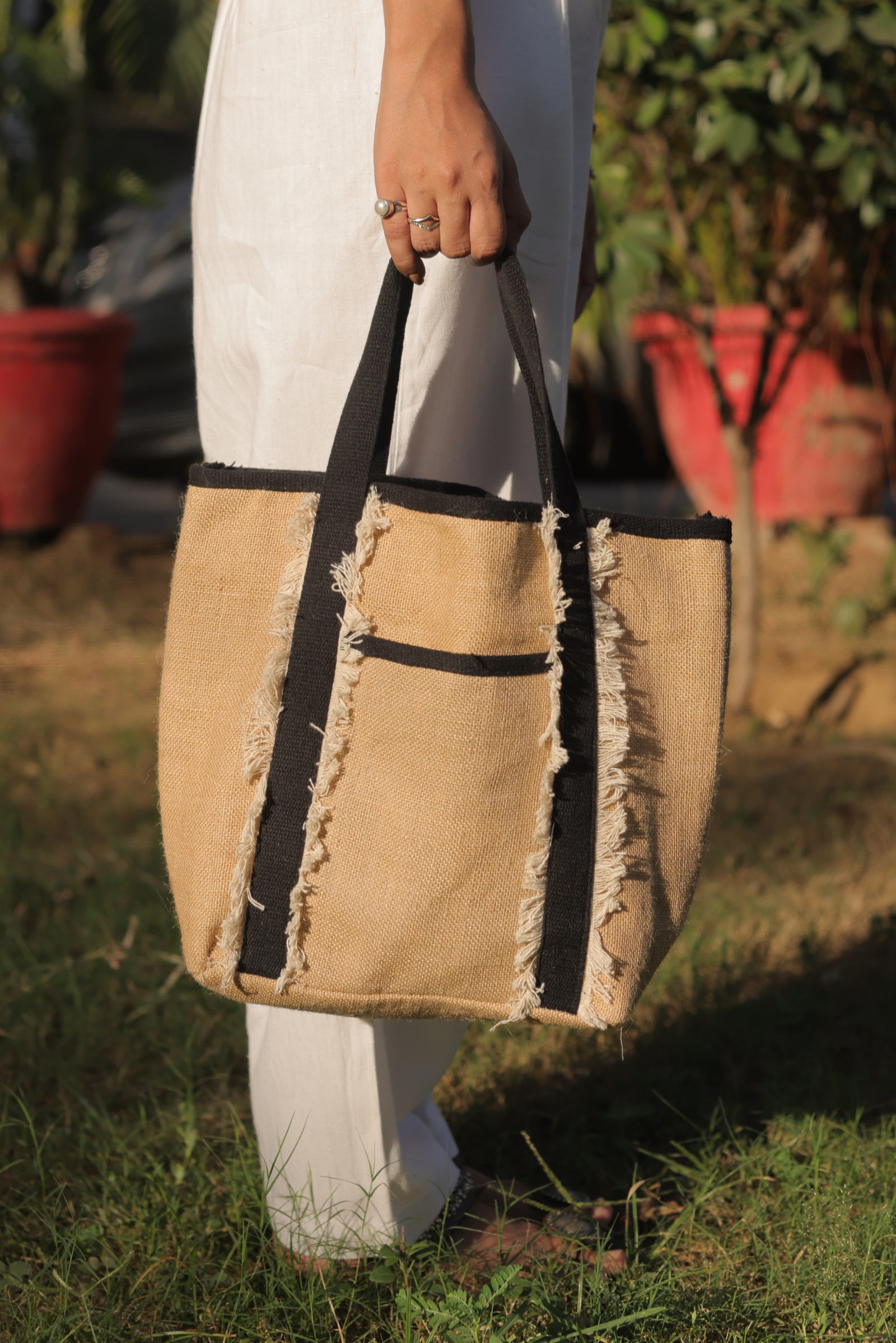 Elevate your eco-friendly style with the Rustic Charm Jute Tote Bag, a perfect blend of sustainability and timeless design. Crafted from durable, natural jute fabric, this tote features frayed edges for a rustic aesthetic and sturdy black straps for comfortable carrying. Spacious and versatile, it’s ideal for shopping, picnics, beach days, or casual outings. Its minimalist yet chic look makes it a practical and stylish companion for everyday use.